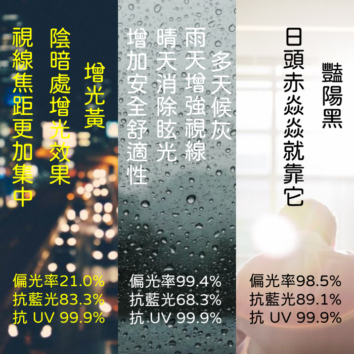 ✅ 三種片色|依照需求挑選最適合的墨鏡夾片